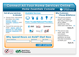 The Home Services Widget adds value to your site by providing a one-stop online comparison shopping marketplace for residential home services. Millions of consumers use the WhiteFence.com service to compare and connect essential home connection services such as home phone, electricity, cable, high speed internet, newspaper and many other categories.